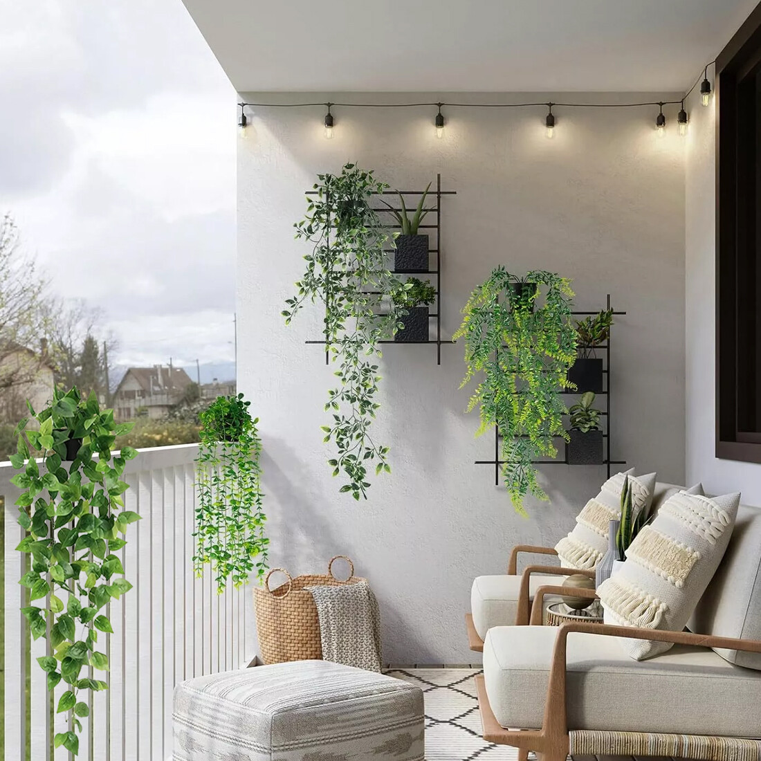 4 Pack Artificial Hanging Plants In Pots Indoor Fake Trailing Plants Home Room