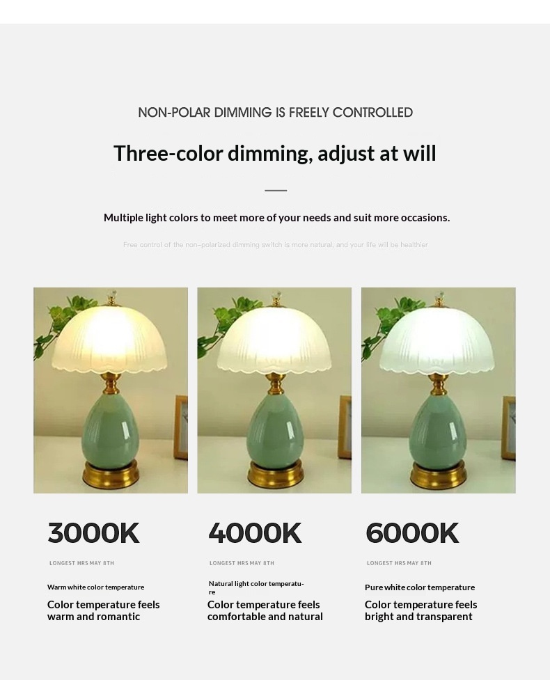 Dimensions: Ice-crack ceramic metal table lamp (white light); ice-crack ceramic metal table lamp (warm light); ice-crack ceramic metal table lamp (9W tri-color light); ice-crack ceramic metal table lamp (12W tri-color light)